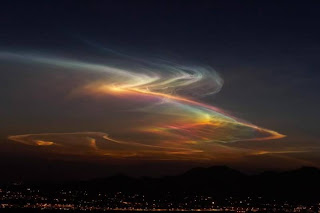 Poate doar fiindca acestea surprind imagini mirifice, la fel ca Aurora Boreala din Nord. Surprinsa in lumina, aceasta prinde mai multe culori superbe, de deasupra unui oras intunecat.