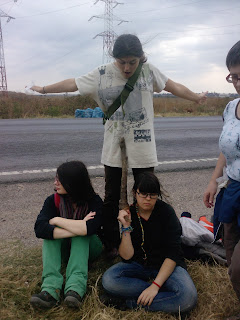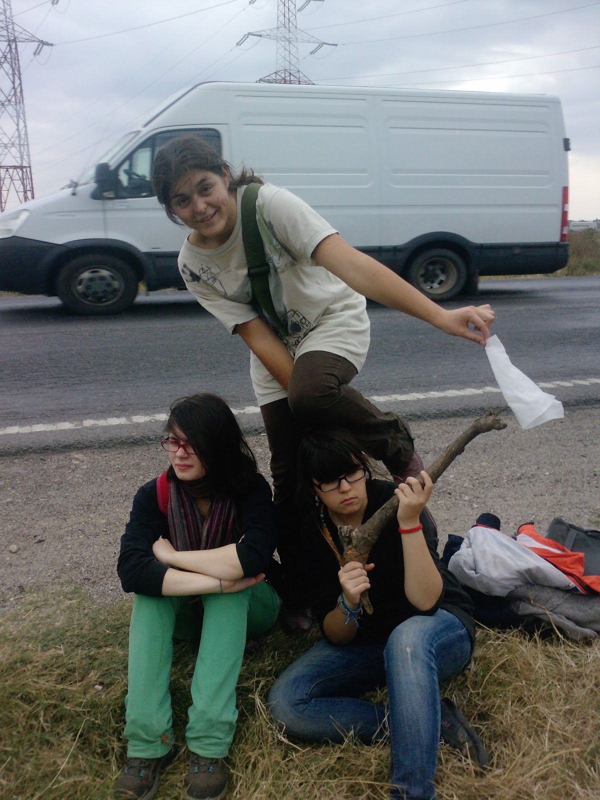 Dupa 5 ore de curatat sticle, hartii, fiare, fire, sticle, borcane, 'muci' de tigara si cauciucuri, am inceput sa ne dam bine pe langa tiristi. Si cam trei sferturi ne-au claxonat sau ne-au facut cu mana.